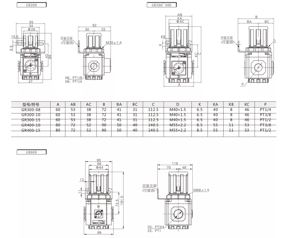 Airtac نوع GR منظم الضغط ميزات المنتج: