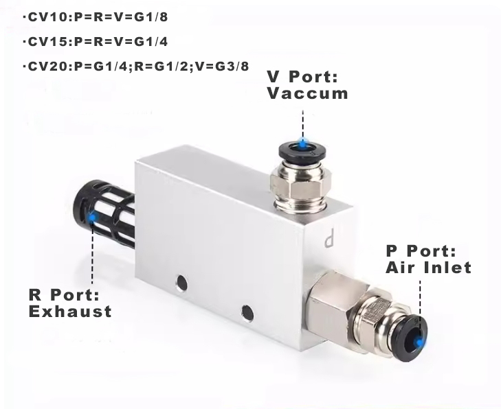 تُستخدم مولدات التفريغ Ouleikai (OLK) CV لتوفير بيئة التفريغ اللازمة لفوهات الشفط أو التركيبات. يجب أن يكون منفذ السحب متصلاً بالهواء المضغوط، بينما يتم توصيل كوب الشفط بمنفذ التفريغ. عندما يتدفق الهواء المضغوط من منفذ السحب إلى منفذ العادم، يتم إنشاء فراغ في منفذ الفراغ. يمكن استخدام قوة الفراغ هذه للالتصاق بالأشياء، وتحقيق مهام مثل التثبيت أو الدعم، وبالتالي تحسين الكفاءة التشغيلية في الإنتاج الصناعي.