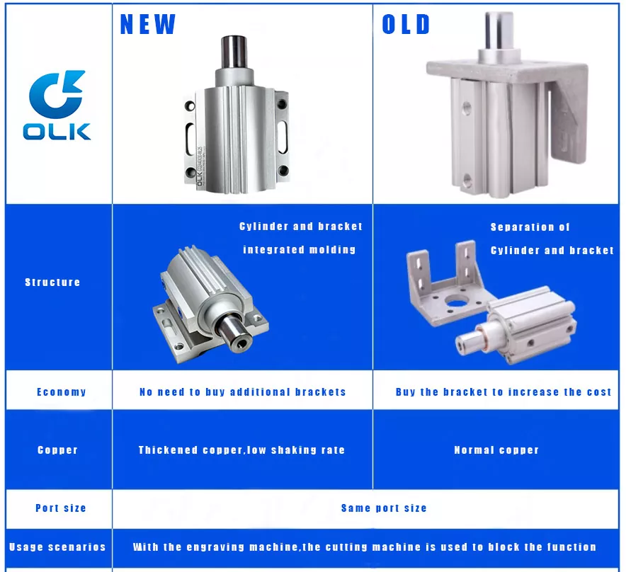 لدى OLK PNEUMATIC نمطان من الأسطوانات لتلبية متطلبات المشهد المختلفة. للحصول على تفاصيل محددة، يرجى الاتصال بفريق مبيعات OLK.