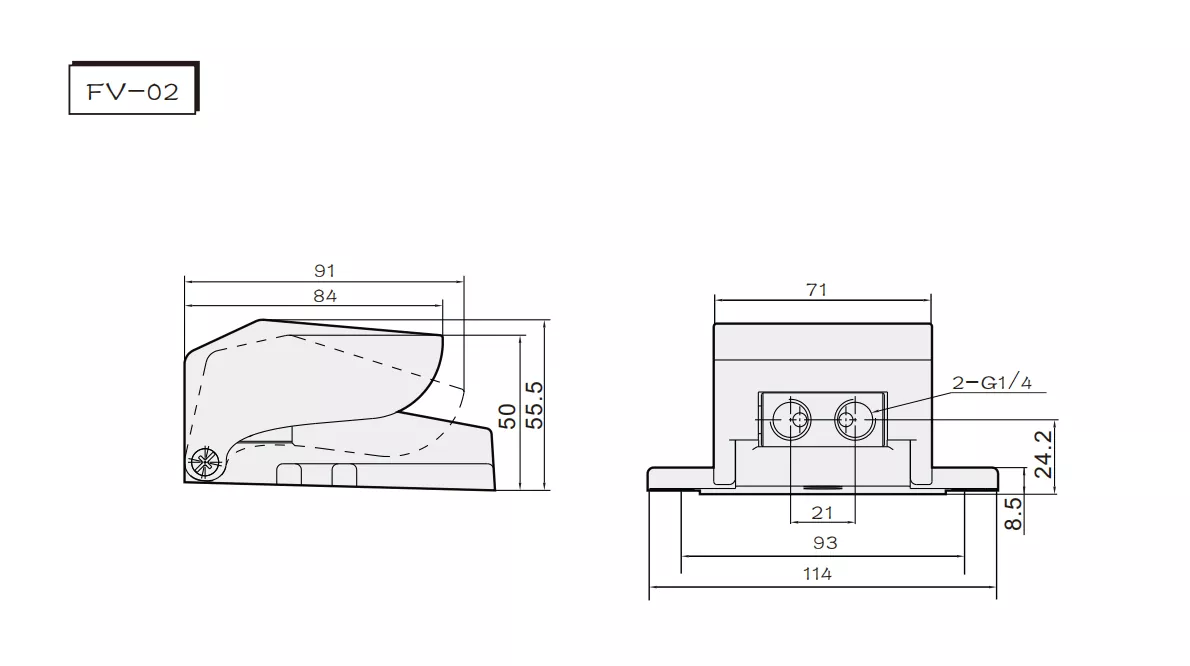 FV-02 صمام دواسة القدم الهوائية 3 اتجاهات المعلمات العامة