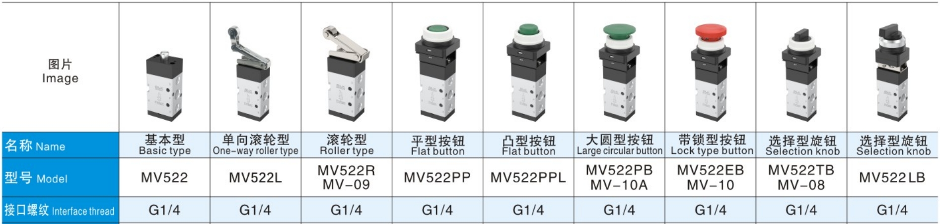 MV522 SERIES صمام التحكم الميكانيكي ذو 5 اتجاهات المعلمات العامة