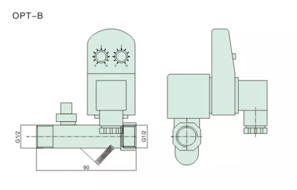 يدعم التصريف التلقائي للمؤقت الإلكتروني OLK OPT-B كلاً من التحكم الكهربائي والإغلاق اليدوي كحماية مزدوجة؛ يتم حجز مفتاح إيقاف يدوي خارجي على جسم الصمام لمنع التدفق أثناء انقطاع التيار الكهربائي. يقع المدخل على الجانب البعيد عن الملف، والمنفذ الأوسط بدون أسنان هو مخرج التصريف، والمنفذ الأخير هو المخرج.