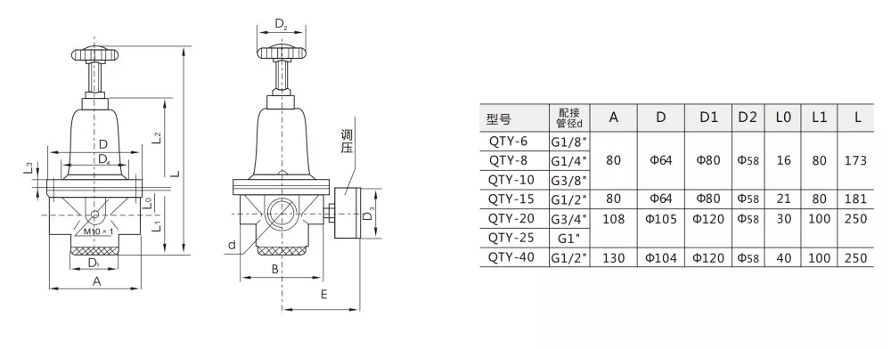 QTYH: منظم الضغط العالي (الضغط العالي)، قادر على التعامل مع ضغط الدخول العالي، مناسب لمصادر الهواء عالية الضغط أو التطبيقات الصناعية الخاصة.