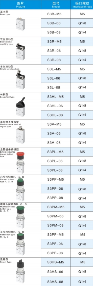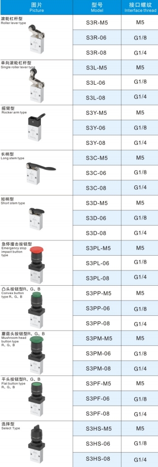 2. يتم تشغيل سلسلة S3PF، S3PM، S3PP، S3PL، S3Y، S3HS، S3C، S3D يدويًا، وتتميز بأشكال هيكلية مختلفة لرؤوس التحكم للاستخدام المريح في ظروف مختلفة.