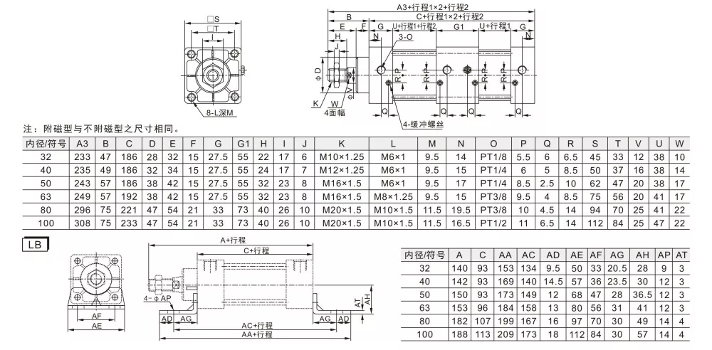 · تعتبر مواد الختم المقاومة للحرارة العالية اختيارية، مما يسمح للأسطوانة بالعمل بشكل طبيعي عند 150 درجة مئوية.