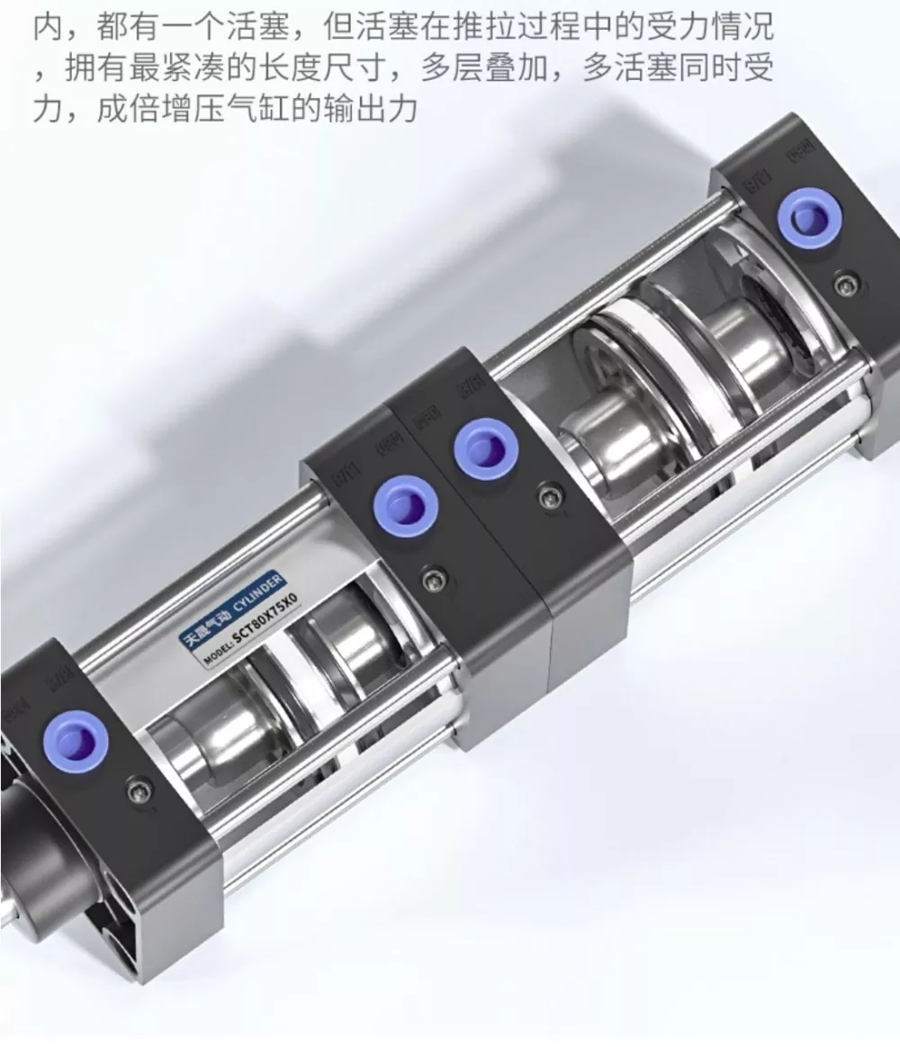 تتميز أسطوانة قضيب الربط SCT بحلقات إغلاق YCC ثنائية الاتجاه وتصميم قوي مزدوج الشوط، مع مظهر مدمج ومصقول يضمن العمل السريع والإخراج السلس والمستقر. تحتوي كل طبقة من الأسطوانة على مكبس فردي، وأثناء عملية الدفع والسحب، تتقاسم المكابس المتعددة الحمل، مما يسمح للأسطوانة بتحقيق الطول الأكثر إحكاما مع توليد قوة خرج مضاعفة من خلال هيكلها المكدس متعدد الطبقات. يوفر هذا التصميم ذو القوة المزدوجة طاقة أقوى، كما يوفر تكوين حلقات الختم الستة أداءً ممتازًا في الغلق، مما يتيح للأسطوانة الاحتفاظ بضغط يصل إلى 1.4 ميجا باسكال دون تسرب.